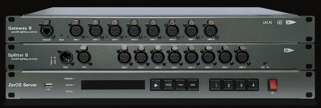 En el caso del teatro del campus de Bedford, de mayor tamaño y 255 plazas, se instaló un servidor ZerOS, junto con dos unidades de RigSwitch Zero 88 de veinticuatro canales. La distribución DMX se actualizó también con dispositivos Gateway 8 y Splitter 8 de este fabricante.