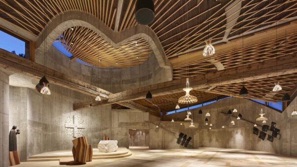 Obra de la arquitecta Benedetta Tagliabue, del estudio Miralles Tagliabue E.M.B.T, el diseño de la solución de audio para esta iglesia ha sido desarrollado por el especialista italiano Audio Solutions snc , en colaboración con Marco Cappellotto, de Prase Media Technologies.