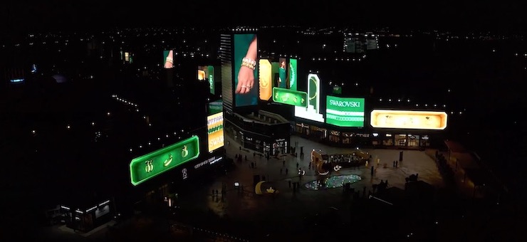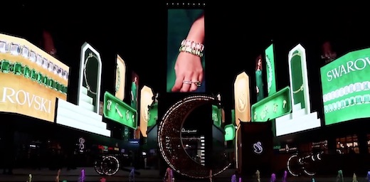Swarovski Bureau BeatriceEl proyecto, realizado a medida para una sola noche por la empresa multimedia Bureau Béatrice, con sede en Amberes (Bélgica ) y oficinas en Oriente Medio, ha logrado sincronizar creativos contenidos 3D en las 82 pantallas DOOH, para cuya planificación y ejecución han colaborado con el equipo regional de la marca de joyas en Oriente Medio.