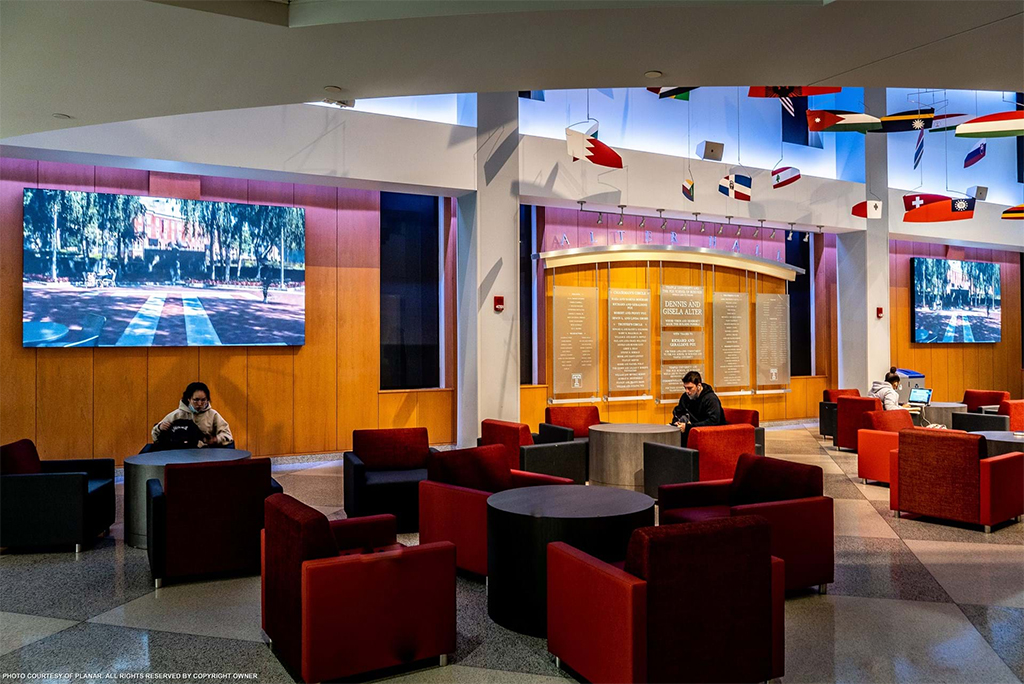 Con el reclutamiento y la experiencia de los estudiantes en mente, los nuevos videowall Led del Alter Hall brindan usos versátiles para Fox School.