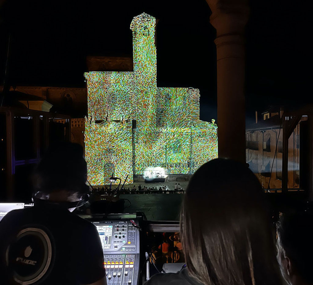 Para ofrecer una experiencia inmersiva al público asistente, el espectáculo contó con música en directo, efectos de iluminación artística envolvente en toda la plaza y de vídeo y sonido de alta definición.