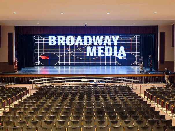 En el instituto de educación secundaria de Yorkshire (Nueva York) Pioneer Central School se ha creado un centro de artes escénicas que cuenta con un espectacular telón de fondo integrado por un videowall de 2,4 mm y una superficie de 5,4×14,9 metros fabricado por Watchfire Signs. En este proyecto también han participado las empresas M&E Engineering y Jones Architects.