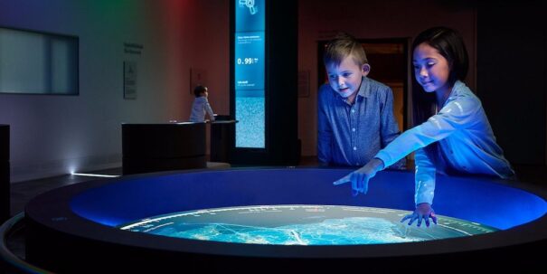 A medida que los visitantes continúan su recorrido, varias pantallas táctiles de gran formato del fabricante brindan nuevas oportunidades para aprender sobre este sitio único, junto con dos sistemas visuales montados en una mesa para mostrar el flujo de magma entre las placas tectónicas.