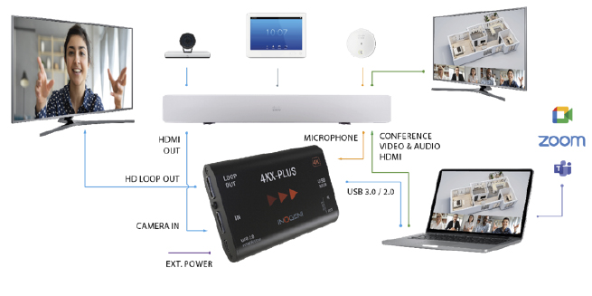 El 4KX-Plus permite realizar videoconferencias con Teams o Zoom (en la modalidad BYOM – Bring Your Own Meeting) utilizando un ordenador portátil y los equipos de Cisco Webex ya instalados en la sala de reuniones. Por su parte, Toggle es un conmutador USB 3.0 inteligente y controlable para aplicaciones BYOM.