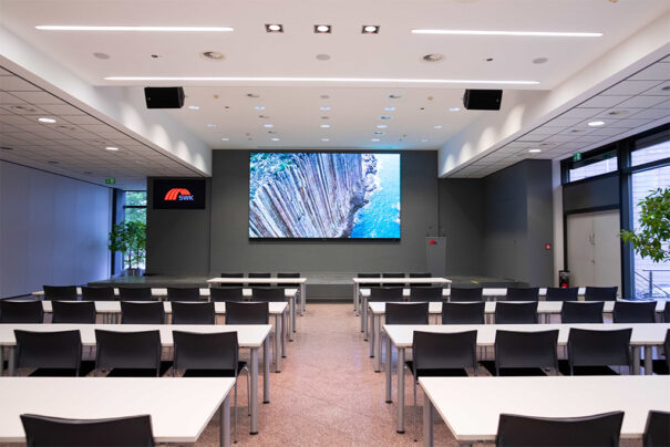 La configuración AV que había antes de la actualización había en la sala de conferencias dificultaba que los asistentes, especialmente aquellos que estaban lejos de la pantalla o sentados a los lados de la sala, vieran la pantalla y escucharan el audio con claridad. Además, las condiciones de iluminación, que dependían del clima, frecuentemente obstaculizaban la visibilidad de la pantalla.