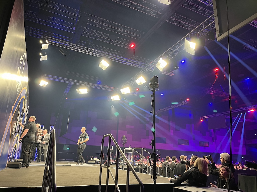 “Hay varios aspectos que debemos tener en cuenta cuando se trata de la iluminación -explica Arne Lorenz, responsable de tecnología de eventos de Audio Werft-. Por un lado, se trata de proporcionar una buena luz para las cámaras y la retransmisión televisiva. Por otro, en un deporte de precisión como los dardos, la iluminación también desempeña un papel importante en el bienestar de los jugadores”.