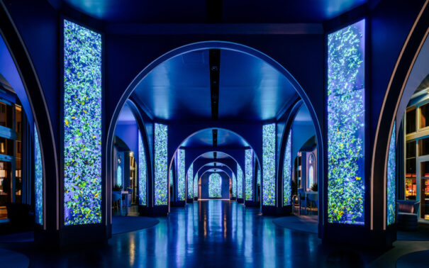 El denominado The Grand Hall, lleno de columnas, protagoniza esta experiencia multimedia inmersiva, transformando este espacio en cuatro entornos únicos, dependiendo de la hora del día, para que los huéspedes los exploren y disfruten: un paisaje de jardín viviente; un bosque encantado al caer la noche; un majestuoso mundo submarino y un país de las maravillas etéreo por encima de las nubes.