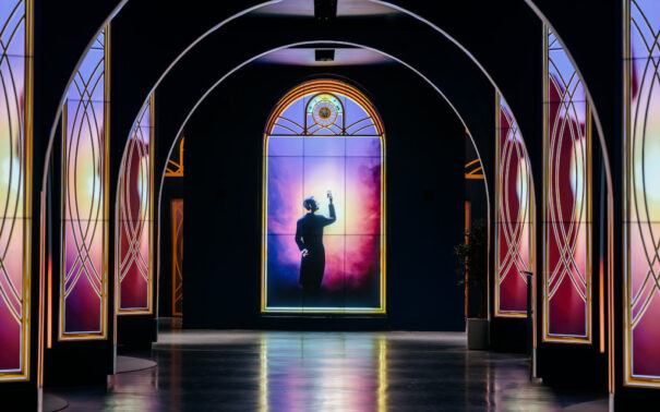 Gracias a la dirección creativa de Moment Factory, los huéspedes y visitantes pueden disfrutar de un gran vestíbulo que les envuelve en una escenografía sorprendente, diseñada por Tétris Design & Build y decorada por Maison Numéro 20, en torno a las animaciones, la iluminación y la música en cada columna y arco.