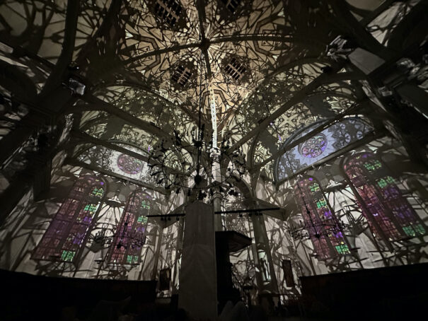 MP-Studio, especialista en creación de contenidos y mapping de proyección, ha jugado un papel fundamental en la elaboración de un hilo argumental único y en su conversión a un conjunto de imágenes visualmente impactantes, con la producción de siete películas distintas, cada una proyectada en un lugar concreto de la iglesia.