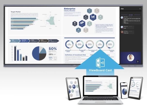 El software de pizarra digital myViewBoard de ViewSonic combina seguridad de nivel empresarial con portabilidad basada en la nube y herramientas de anotación para mejorar la forma en que el equipo se conecta y colabora.