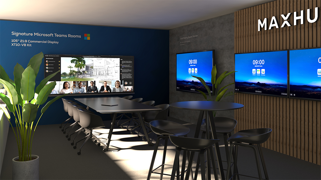 MaxHub showroomm AmsterdamEsta sala de exposiciones busca transportar a los visitantes a entornos de trabajo innovadores con soluciones de MaxHub como las pantallas Ultra-Wide 5K de 105 pulgadas, la Transcend IFPD o la pared Led Raptor de 138 pulgadas.