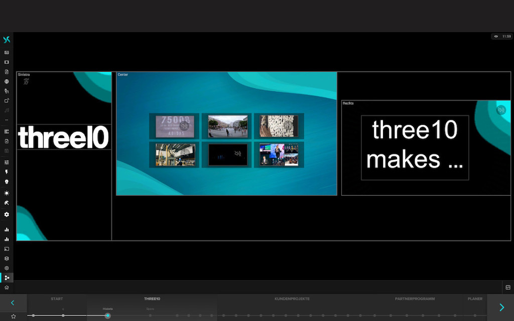El software three10 X AV/IT proporciona a los usuarios la posibilidad de configurar y diseñar conceptos creativos sin necesidad de tener una amplia experiencia en este sentido, gracias a su manejo intuitivo, administración de pantalla inteligente, integración de terceros a través de una API y modelos de licencia de por vida.