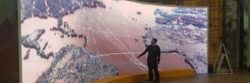 El elemento central es una pantalla curva envolvente en ‘U’ de 31×2,5 metros del modelo Alfalite Modularpix Pro 1.9 ORIM. Este display tiene la capacidad de procesar hasta tres señales de vídeo 8K o 12 señales de vídeo 4K de hasta 12 bits y más de 50 millones de pixeles, compatibles con la recreación de entornos de realidad aumentada, extendida y virtual. Además, permite la proyección en alta definición tanto de imágenes como de gráficos e infografías.