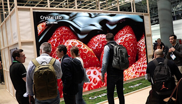 En la zona de producción virtual se presentó por primera vez el vanguardista Crystal Led Verona de 220 pulgadas de 1,5 mm y 2,3 mm en toda su capacidad, que consigue simultáneamente una profunda expresión del negro y antirreflejos.