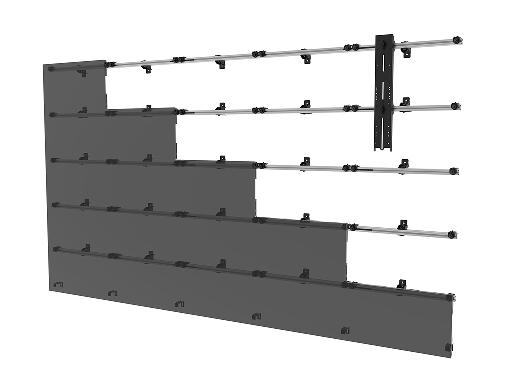 El sistema de montaje dvLED (DS-LEDUNV) de Peerless-AV está disponible en modelos 1:1 para pantallas de 610, 960 y 1.220 mm de ancho. Además, incluye un paquete de hardware universal, compatible con la mayoría de armarios dvLED con enclavamiento.