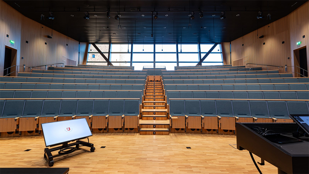 La acústica activa es una herramienta poderosa para aumentar el compromiso, afirma Jørgensen. «Una de las cosas que hemos visto tanto en la Torre Maersk como en este proyecto es que los estudiantes se sienten más involucrados en la conferencia. Desde mi punto de vista, hay tres razones para ello. Uno es el sistema de acústica activa, el segundo es la elevación de los asientos y el último es el equilibrio de luz natural y artificial en la sala. Si encuentras la combinación correcta entre esas tres cosas, obtendrás un espacio de aprendizaje más activo que involucra más a las personas”.