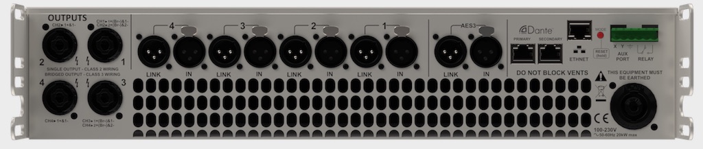 Además, utiliza Ethernet para el control remoto del sistema y la supervisión se realiza a través de la aplicación de software VU-NET de Martin Audio. Una interfaz de panel frontal facilita el control local completo de todas las funciones. También dispone de entradas de red Dante para la distribución y el control de audio digital.