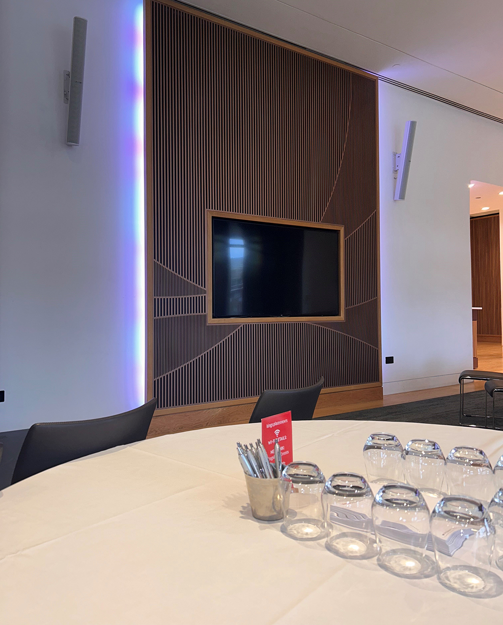 Kings Place es un cliente de Marque AV y cuando llegó el momento de actualizar el equipo AV de la sala Battlebridge, el lugar se acercó nuevamente al integrador, un para diseñar e instalar el nuevo sistema. Stacey Tough, directora de Marquee AV y directora de proyecto para la instalación de Kings Place, explica que su filosofía de diseño era ser lo más discreto posible, combinando el estilo sofisticado y minimalista tanto de Battlebridge como del recinto más amplio de Kings Place.