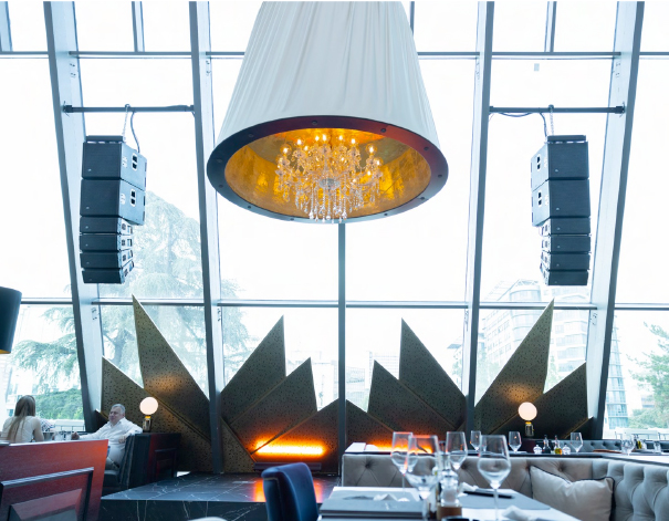 Esta instalación se enfrentaba a dos desafíos fundamentales. Los sistemas tenían que ofrecer un sonido nítido y potente, pero con la capacidad de adaptarse a dos ambientes completamente diferentes. Por un lado, acompañar de forma sutil y tranquila una comida o cena, creando un sofisticado ambiente que acompañe la calidad culinaria del lugar. Por otro, estar a la altura de todo tipo de actuaciones nocturnas. Por último pero no menos importante, los plazos de entrega e instalación también suponían un verdadero reto. Para todos estos desafíos, el distribuidor de DAS Audio, Light and Sound Design de Belgrado, tenía una solución a medida.