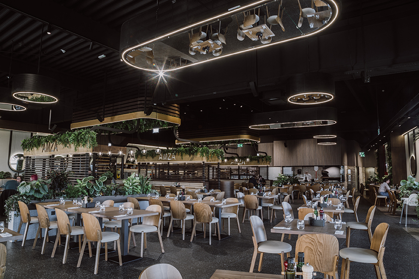 Para proporcionar un sonido uniforme pero versátil al nuevo local de restauración Amza, inaugurado este año, el proveedor de equipos audiovisuales Set-UP optó por una combinación de las series de altavoces Curv 500 y DQOR de LD Systems, marca de Adam Hall, controlados por una matriz de audio Zone X 1208 que incluye reproductores de radio por Internet.