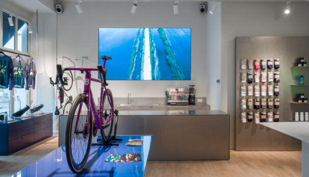 “El sonido no es solo un accesorio; es parte del ADN del espacio”, explica Ward. “Queríamos un entorno donde el sonido se sintiera orgánico e inmersivo, invitando a los clientes a conectarse con la cultura ciclista que representamos”.