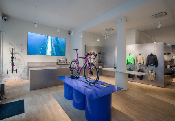 Situado en el corazón de Berlín, el espacio de venta minorista MAAP fusiona el diseño de vanguardia con la cultura ciclista. Como marca de ropa de ciclismo de alto rendimiento, es famosa por combinar la estética con el rendimiento, al tiempo que crea espacios físicos que encarnan el espíritu de la marca.
