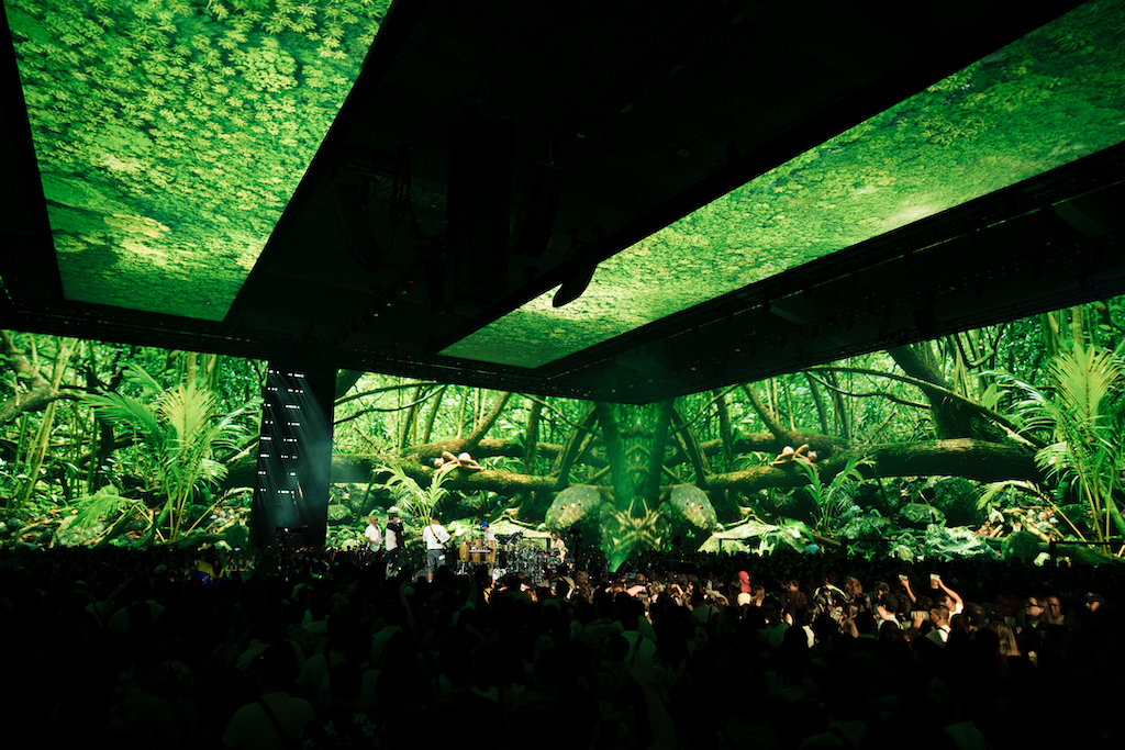 Para dar vida a esta ambiciosa experiencia inmersiva a gran escala en cada concierto de la gira, Cercle Odyssey utiliza 2.300 m² de espacio de proyección en las paredes y el techo de cada recinto en el que se celebre.