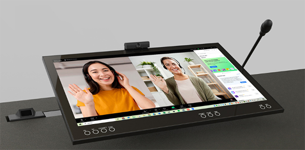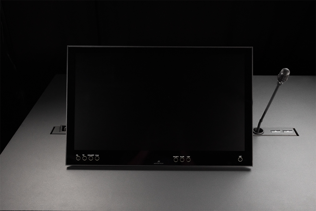 Estos monitores incluyen un micrófono retráctil de cuello de ganso, un cable retráctil USB-C y una cámara motorizada, elementos que se controlan de forma independiente y se ocultan en la mesa cuando no se utilizan. El sistema dispone una tapa automatizada que se desliza hacia el interior de la mesa y que permite su enchapado, con la finalidad de una integración discreta en la mesa de juntas.