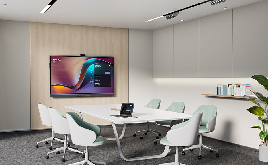 Se trata de una opción para salas de formación, coworking o zonas polivalentes, al combinar en un solo equipo una pantalla táctil 4K que actúa como pizarra interactiva, triple cámara de 50 MP con auto encuadre inteligente y audio Full-Dúplex con cancelación de ruido por IA.