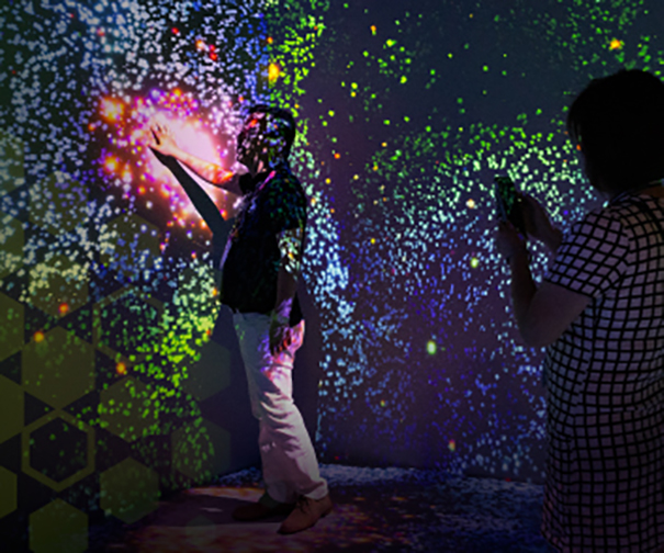 La sala inmersiva e interactiva vuelve al estand de Christie en InfoComm. Con una combinación de proyectores láser 1DLP de la Serie Inspire y sensores y cámaras de Augmenta, los asistentes podrán interactuar con contenidos proyectados en las paredes y el suelo, incluyendo partículas, fluidos dinámicos y efectos visuales envolventes.