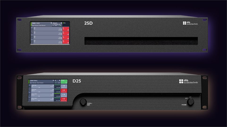 Diseñados para la versatilidad, el amplificador D25 se ha optimizado para aplicaciones de ‘touring’ mientras que el 25D se ha creado para dar respuesta a los requerimientos en instalaciones. Estos equipos aprovechan las capacidades de la plataforma DSP de d&b audiotechnik, que incluye la red Milan.