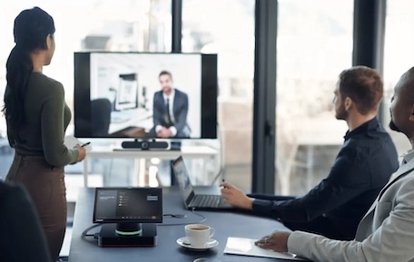 Independientemente de la plataforma de comunicaciones que se utilice, esta solución compacta e integrada es capaz de adaptarse al ecosistema del cliente, ofrecer la flexibilidad que requieren los equipos para conectarse y colaborar de manera fluida en los actuales entornos laborales híbridos.