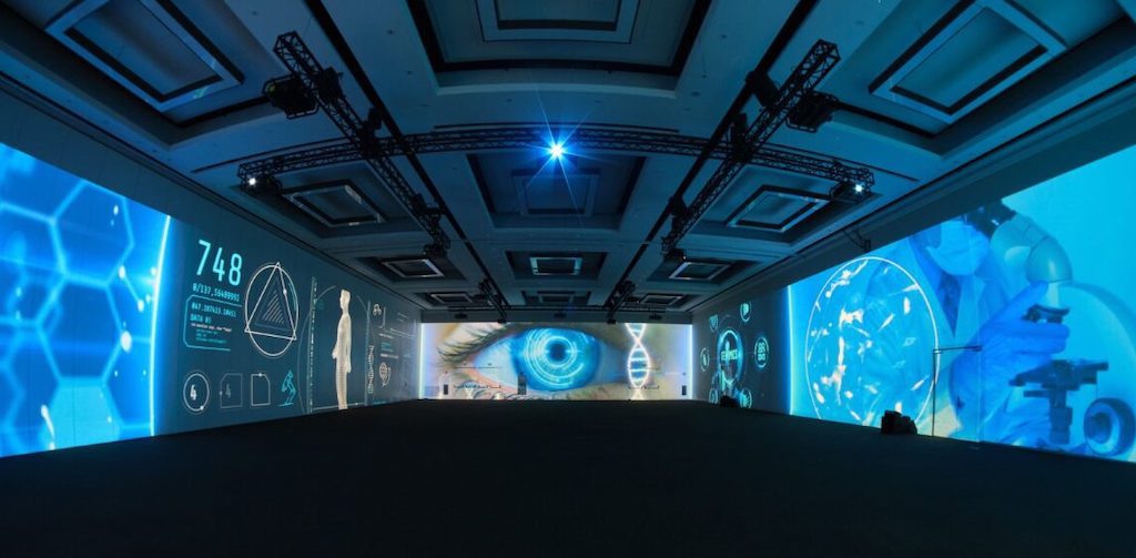La necesidad principal era lograr un sistema lo más ágil y lo más simplificado posible. El espacio, que alterna entre una sala inmersiva y de usos convencionales para eventos, exigía un montaje rápido y eficiente.