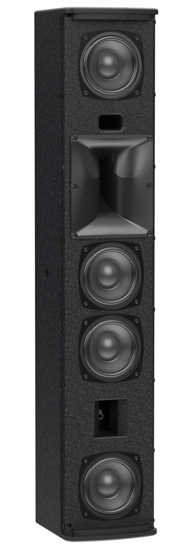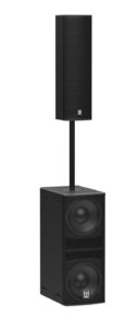 Los recintos están fabricados en contrachapado resistente y cuentan con puertos ranurados, lo que aporta eficiencia al diseño y reduce la turbulencia del ruido. Cada recinto incluye un alojamiento M20 de 35 mm para mástil, lo que permite una integración perfecta con todos los altavoces de la serie.