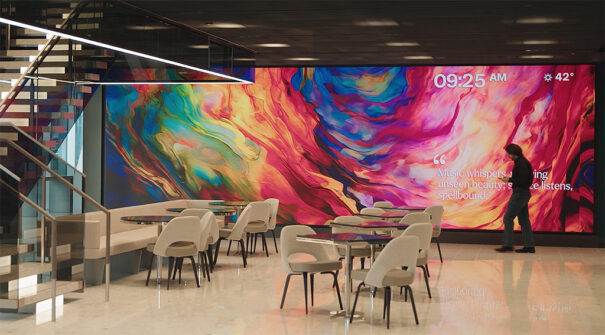 Esta visión se materializa en el centro de recepción de clientes de AllianceBernstein, donde un videowall Led Planar DirectLight Pro de 4,5 metros de ancho y 2,4 metros de alto, con una distancia entre píxeles de 1,2 mm, funciona como una obra de arte viviente.