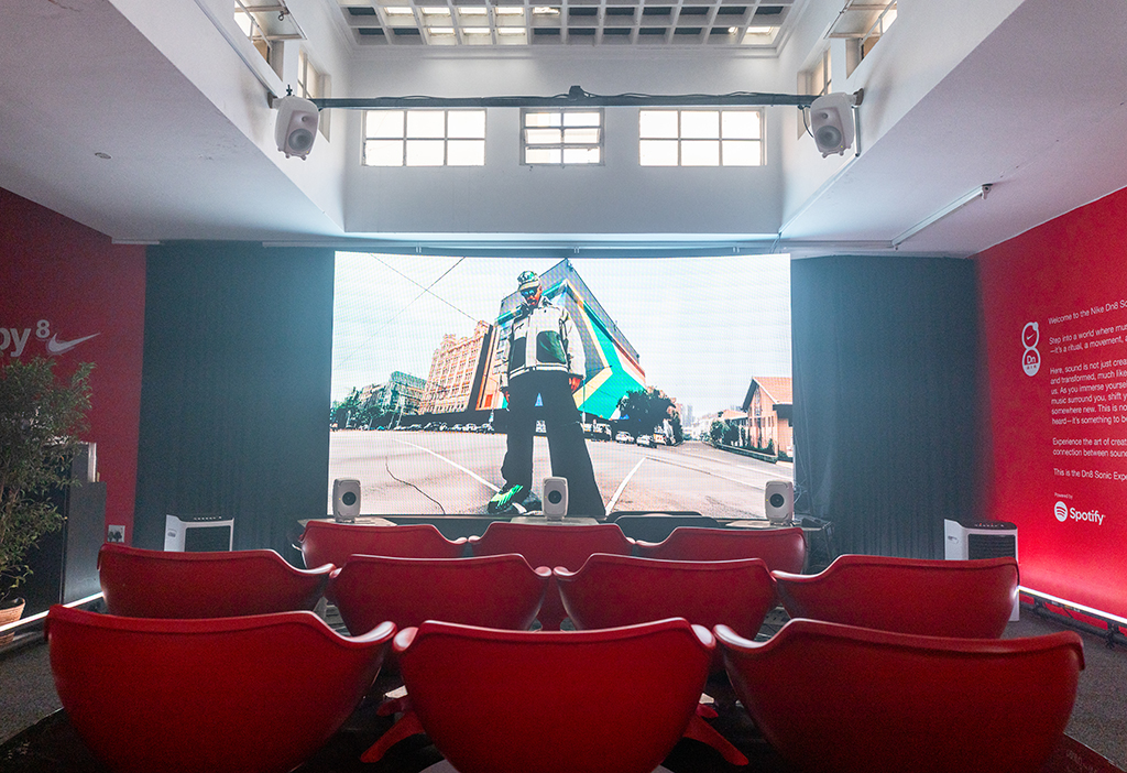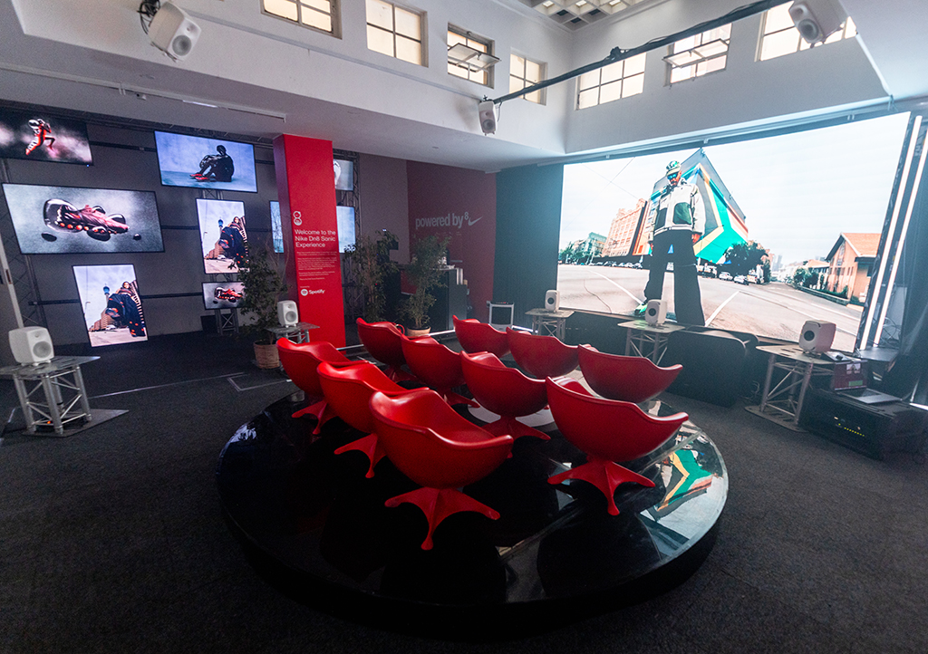 Nike ocupó cinco espacios en la zona de Braamfontein y celebró una gran fiesta. La experiencia de audición incluyó artistas de la escena de música electrónica sudafricana, con géneros como Amapiano, Glom, Afro-House y Afro-Tech. Cuatro de estos artistas actuaron en el espacio Dolby Atmos: DBN Gogo, Shamiso, Mateki2Shoes y ZVRI.