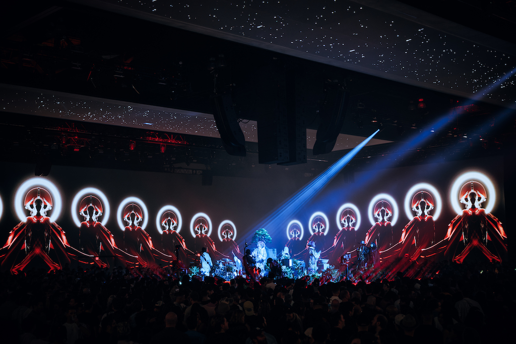 Su arquitectura en tiempo real permitió también realizar cambios creativos de última hora o correcciones operativas durante la actuación en vivo, sin comprometer la fidelidad visual. Con este nivel de control, cada público vivió una experiencia verdaderamente única: una interacción irrepetible entre música, visuales y espacio.