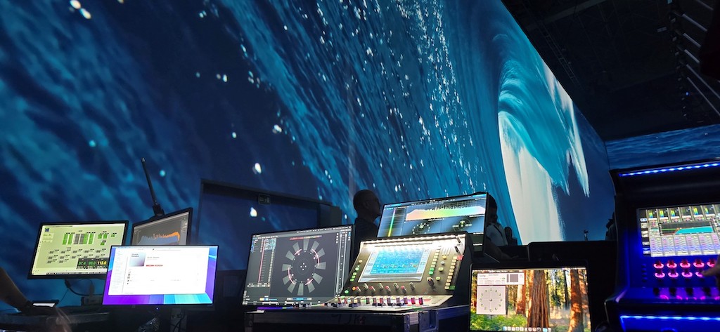 En total, ocho servidores multimedia con licencias Smode gestionaron doce flujos 4K simultáneos, garantizando la compleja proyección multipantalla. Las señales de vídeo se transmitieron por HDMI sobre fibra óptica, con sistemas de distribución Lightware para asegurar una entrega de baja latencia a los proyectores láser de Panasonic (más detalles en Digital AV).