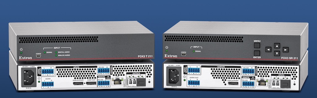 Diseñados para ofrecer un óptimo rendimiento de imagen de alta resolución, los nuevos extensores de fibra óptica DisplayPort Extron FOX3 T 211 y SR 211 proporcionan 4K/60 @ 4:4:4 sin pérdidas a través de una sola fibra.