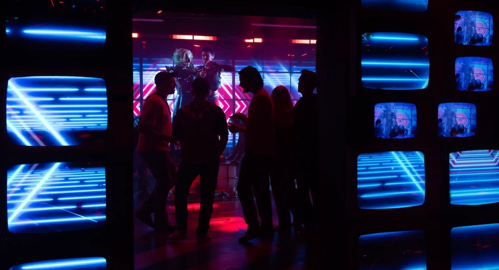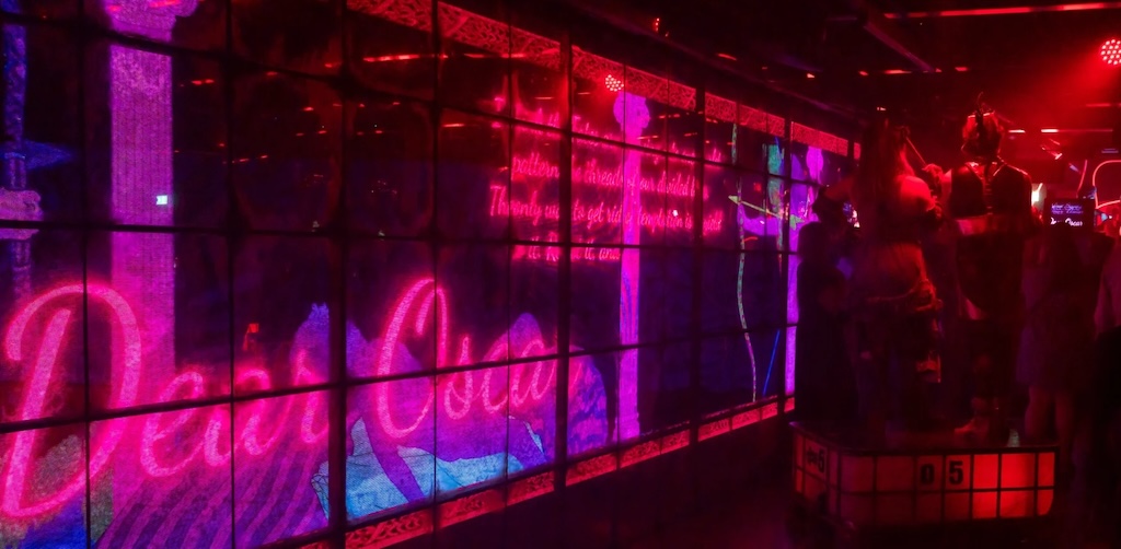 El propio recinto, un antiguo sótano de almacenamiento, se transformó en múltiples espacios de actuación, incluyendo un vagón de metro, bancos de pantallas de televisión, un bar, un escenario y una cabina de DJ, con la pared LED recorriendo toda una pared, lo que tiene una doble función. Proporciona extensiones del escenario que transportan al público a espacios más allá del recinto físico y crea un enorme lienzo para la imaginación de los personajes. El contenido incluye entornos generados por Unreal Engine que reflejan el espacio físico, junto con imágenes en directo de tres cámaras PTZ que capturan a los artistas.