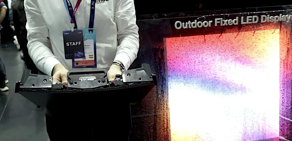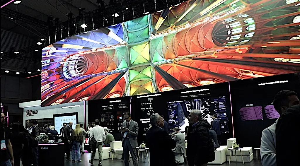 En el stand de Dahua en ISE, sobresalía una gran pantalla de casi 40 metros cuadrados, 1000 nits, 1.95 pixel pitch y terminación COB.