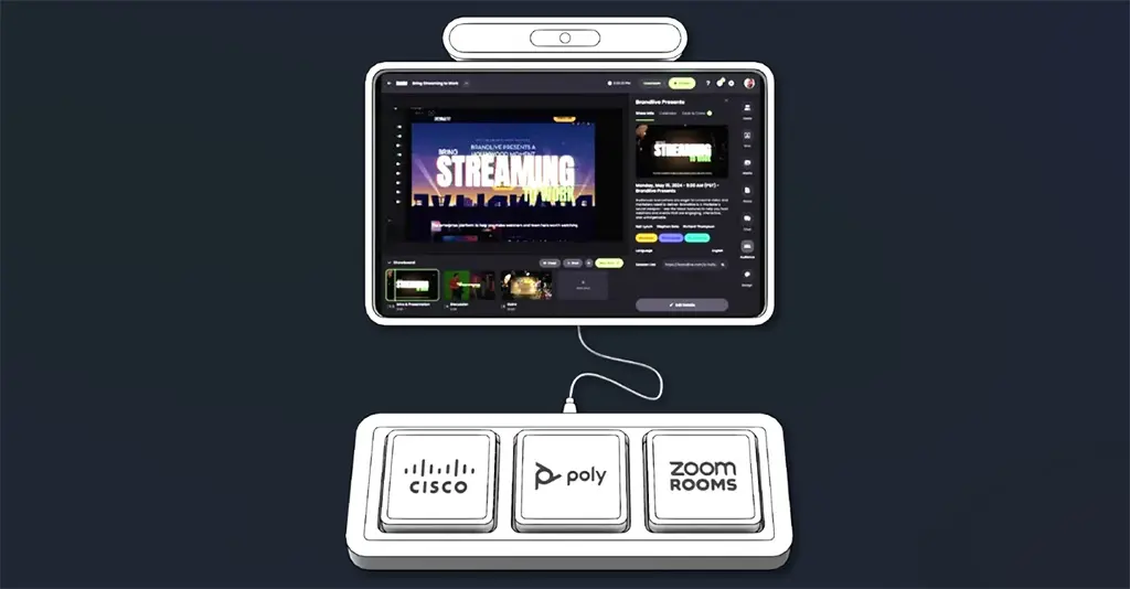 Con esta integración, los equipos que deseen ver un evento corporativo concreto podrán seleccionar e iniciar un evento de Brandlive directamente desde la interfaz de hardware de la sala y abrir la página de visualización en el televisor o la pantalla. Los presentadores o ponentes que participan como talentos en cualquiera de estas retransmisiones obtendrán una vía sencilla para la utilización de las cámaras, el audio y los controles existentes en la sala, mientras que los productores tendrán a su alcance herramientas de control utilizando el software de Brandlive, que incluye comunicaciones bidireccionales fluidas con los presentadores. Todo ello, con los estándares de seguridad, fiabilidad y gobernanza de TI de nivel empresarial habituales.