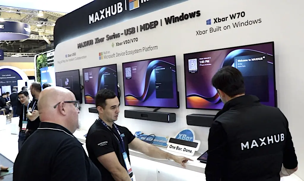 En su stand en ISE 2026, Maxhub centró su presencia principalmente en tres soluciones. Por un lado, una solución de XBar ideal para salas medianas grandes de hasta 10 metros cuadrados y certificada para Microsoft Teams Rooms (MTR). Diseñada para simplificar las reuniones híbridas, la gama XBar combina tecnología de cámara inteligente, audio nítido y una integración perfecta para conferencias, con el fin de mantener a todos los participantes conectados y comprometidos.