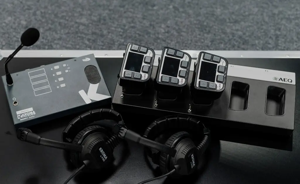 El sistema de intercomunicación incorpora transceptores inalámbricos AEQ Xplorer, dispositivos que funcionan como auténticos paneles de usuario portátiles para coordinar al equipo técnico. Basados en la conectividad Wi-Fi en las bandas de 2,4 y 5 GHz, estos terminales permiten comunicaciones de voz claras y estables incluso en entornos dinámicos como instalaciones deportivas o grandes recintos.