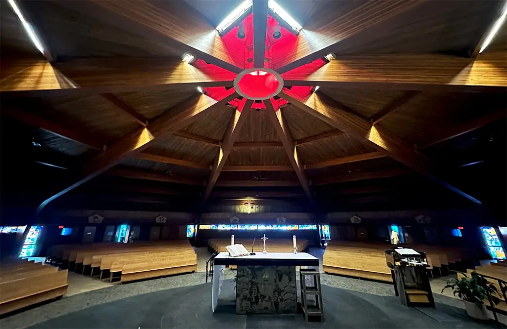 Inaugurada en el año 1967, durante el centenario de Canadá, la iglesia católica romana All Saints Toronto se erige como ejemplo de la arquitectura moderna de mediados de siglo. Su amplio santuario semicircular fue diseñado para enfatizar la claridad espiritual y la simetría arquitectónica.
