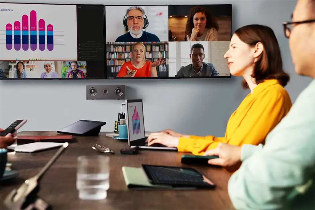 Desplegando ambos sistemas, los participantes pueden iniciar una reunión “con un solo toque” desde el Panel de control de ClickShare. Este botón permite a los empleados e invitados compartir contenido en 4K desde sus propios portátiles sin necesidad de controladores ni formación. En paralelo, el sistema de vídeo y audio impulsado por IA de Huddly C1 brinda la posibilidad que todo el mundo se vea y se oiga con claridad, tanto si los participantes se unen desde la sala como de forma remota.