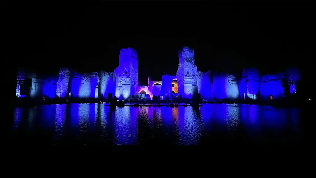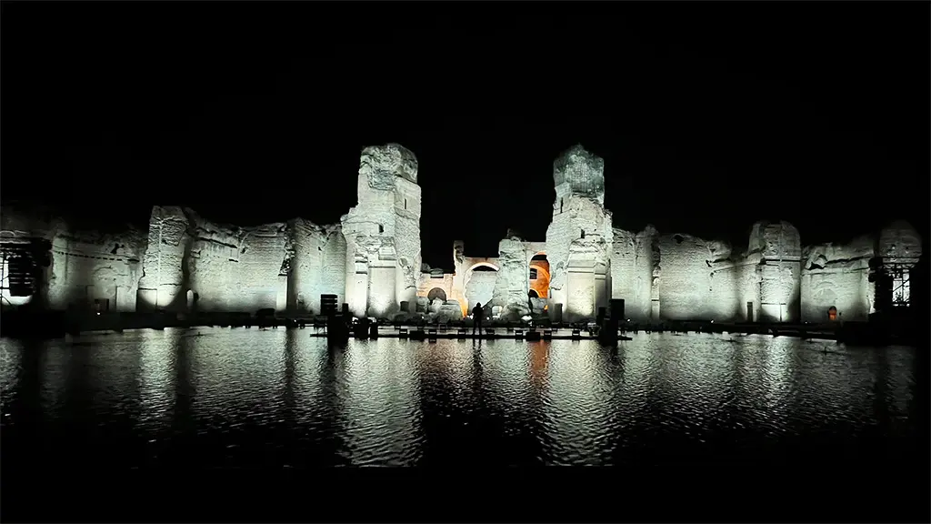 Glp Termas De Caracalla 2El diseño de iluminación contó con la visión del diseñador de iluminación Sergio Cattaneo, cuya dirección artística dio forma a todas las decisiones técnicas y escenográficas. El reto principal consistía en iluminar el lugar histórico utilizando focos LED de tamaño medio con clasificación IP65, logrando al mismo tiempo una cobertura uniforme y una fuerte sensación de profundidad espacial, todo ello respetando plenamente la sensibilidad del entorno histórico.