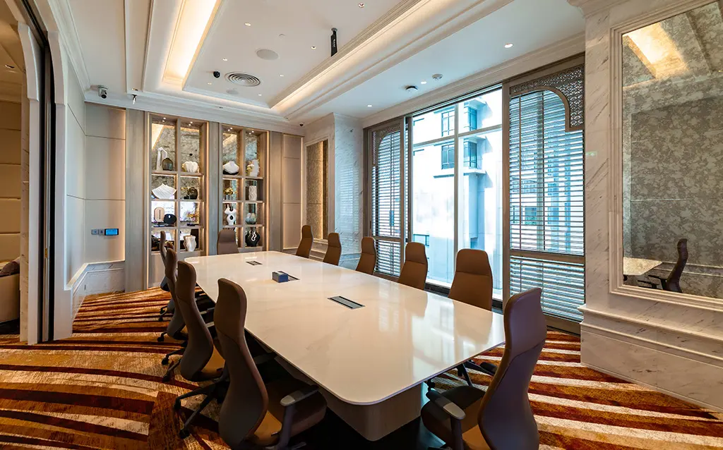 El diseño se centra en ofrecer una experiencia de audio y control homogénea en todas las salas, equipando cada espacio en función de su finalidad y aforo. Una combinación de 24 line arrays JBL SRX910 y 12 subwoofers SRX928S proporciona el refuerzo principal de FOH de las diferentes salas privadas. Para ampliar la flexibilidad de configuración, el hotel también cuenta con 24 line arrays JBL BRX308-LA y 8 subwoofers BRX325SPS, lo que permite a los equipos adaptar las configuraciones de FOH a diferentes distribuciones de las salas y tamaños de público. Durante el diseño y la puesta en marcha, se utilizaron JBL Venue Synthesis y JBL Performance Manager para modelar la acústica de las salas, optimizar la ubicación de los altavoces y ajustar con precisión el rendimiento del sistema.