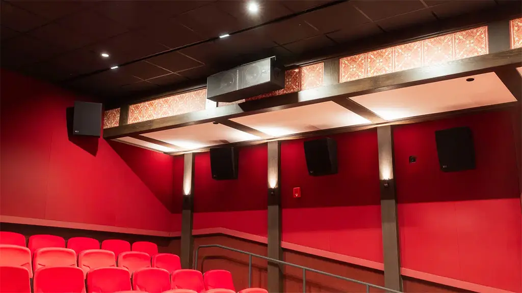 Las tres salas Atmos cuentan con altavoces de canal de pantalla Astrya-140, con arreglos aéreos Ultra-X23XP y altavoces envolventes laterales HMS-10; las dos salas 7.1 cuentan con altavoces de pantalla Acheron Studio y altavoces envolventes HMS-5. Además, varios grupos de subwoofers de cine de alta potencia X-800C dan servicio a las cinco pantallas, mientras que los subwoofers compactos y estrechos USW-210P se encargan de la gestión de graves en las salas Atmos.