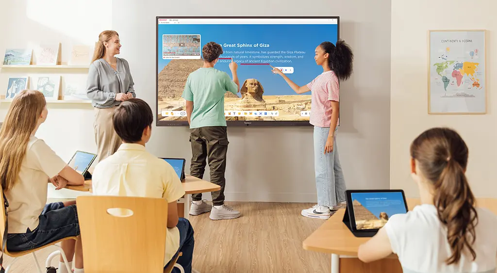 Diseñada para ofrecer una capacidad de respuesta óptima y un uso fiable en el día a día en entornos de aprendizaje modernos, la serie ViewBoard IFP35-1 ofrece una interacción «fluida y precisa» gracias a su tecnología multitáctil de 64 puntos y a una función de «rechazo de la palma de la mano». Los sensores de luz ambiental y de movimiento PIR integrados contribuyen a una gestión energética optimizada, ajustando automáticamente el brillo de la pantalla y activando o poniendo en modo de espera el dispositivo en función de la ocupación del aula.